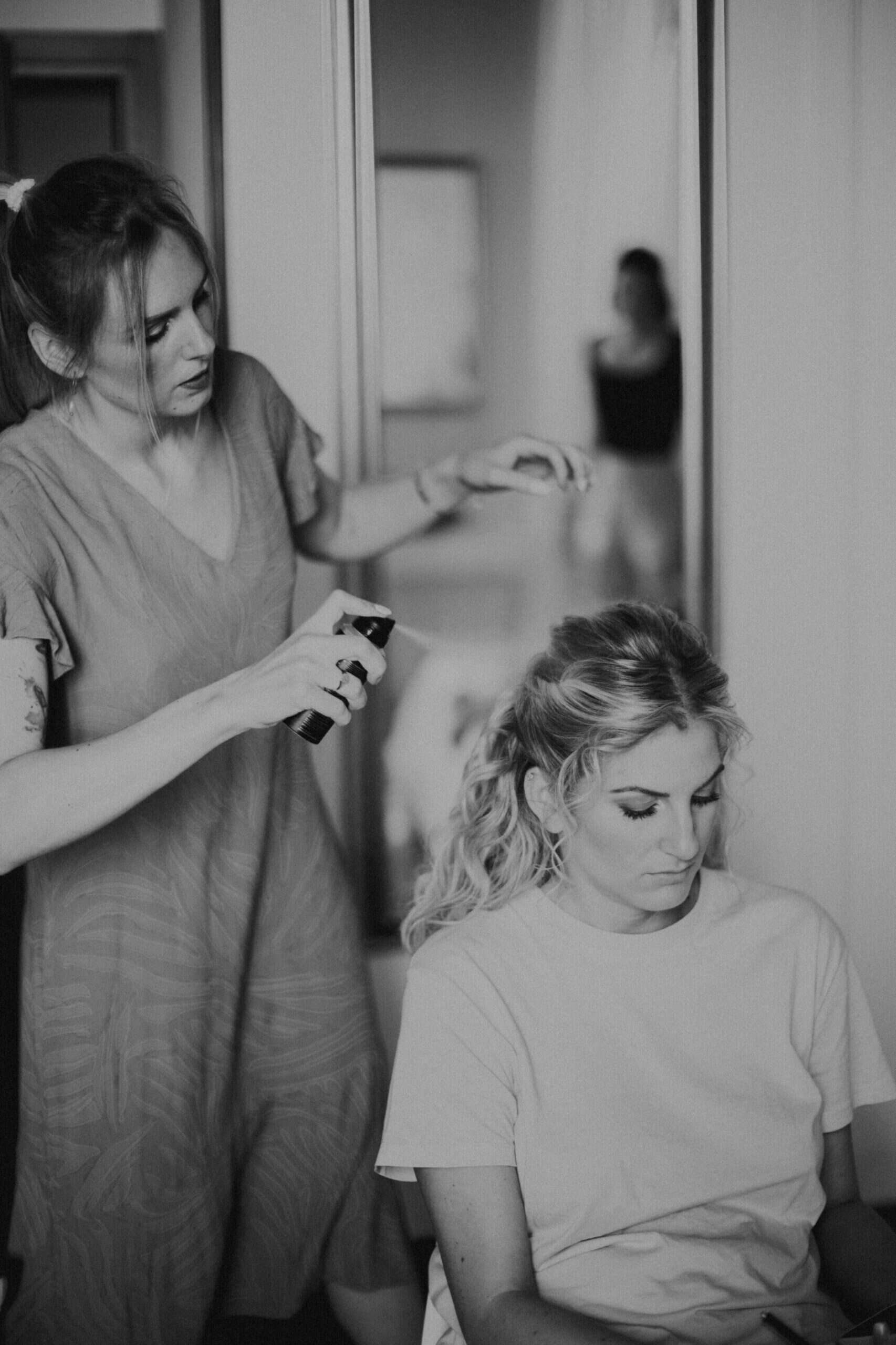 038 – 02-07-23 HZ Theresa und Valentin – L Einblick in die Hochzeitsvorbereitungen: Frau lässt sich für den großen Tag stylen, emotionale Stimmung.
