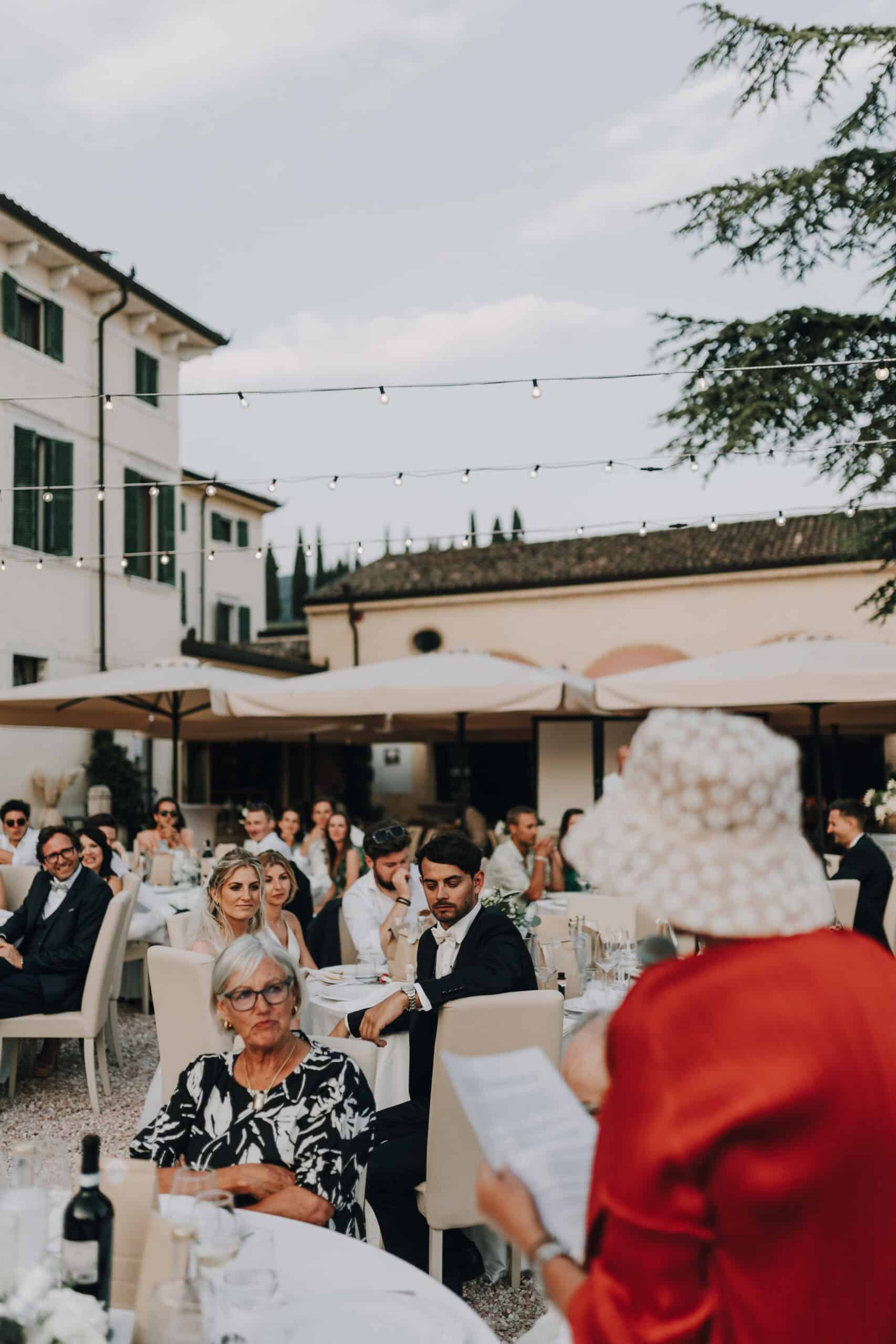 407 – 02-07-23 HZ Theresa und Valentin – L Ein Bild einer Hochzeitsgesellschaft in Tirol bei einer Feier im Freien mit festlicher Dekoration und stimmungsvoller Beleuchtung.