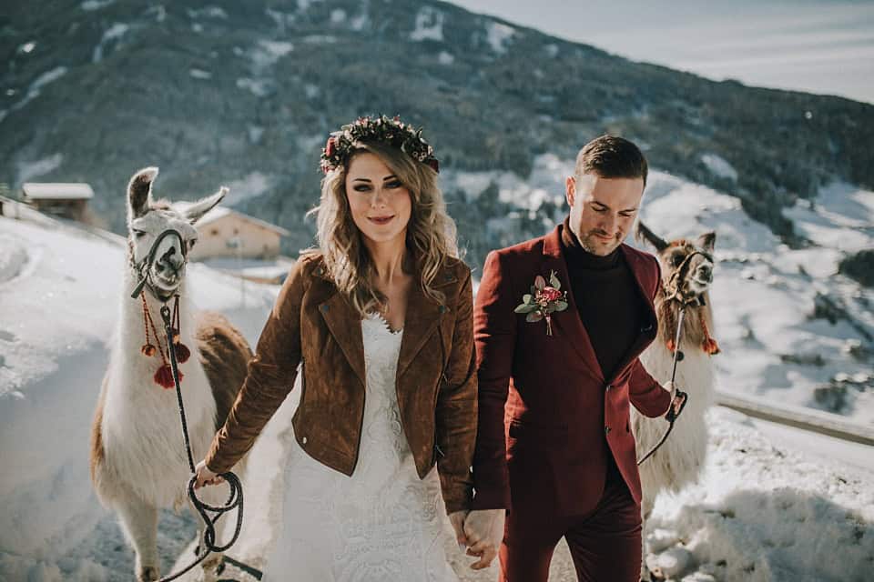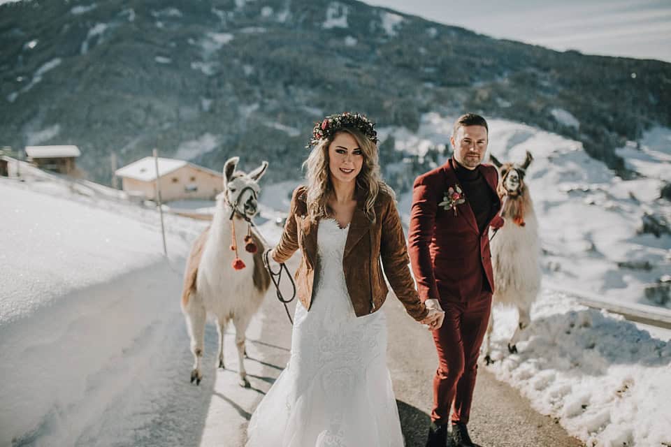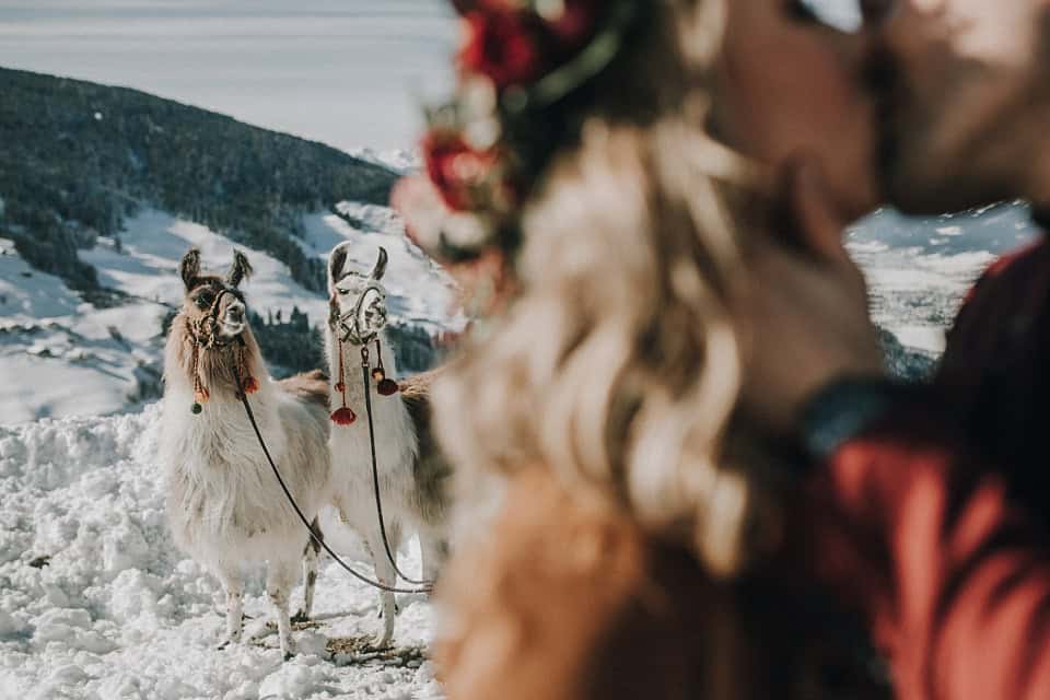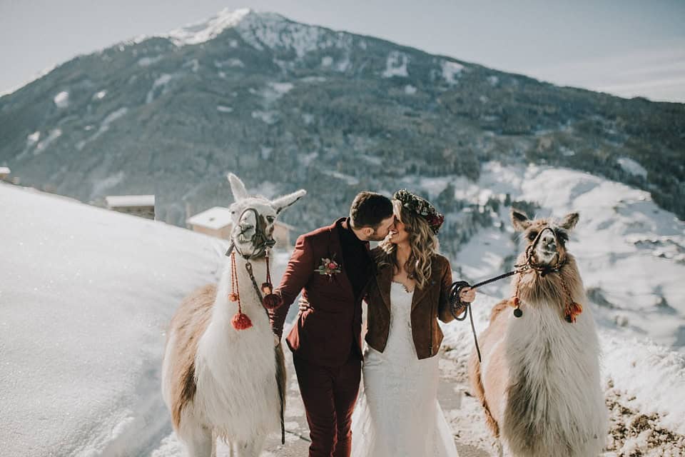 Mit den beiden verbrachten wir einen ganz besonderen Tag. Zuerst ging es für uns mit der Gondel zum Albergo im Skigebiet Hochzillertal. Oben angekommen stapften wir durch den Schnee und konnten die Liebe der beiden auf traumhaften Winterfotos festhalten. Anschließend machten zwei Lamas den Tag von Linda und Michael perfekt und unvergesslich.