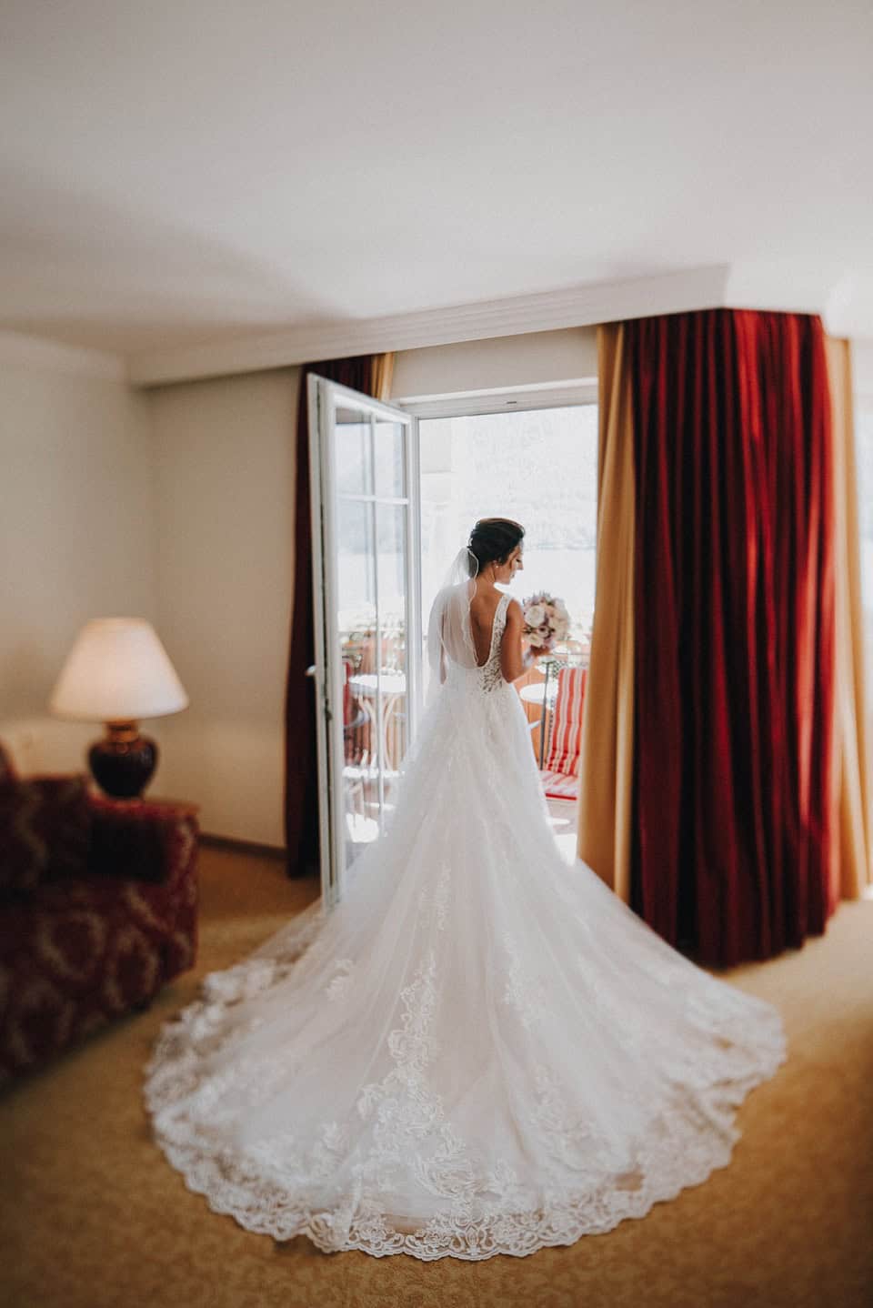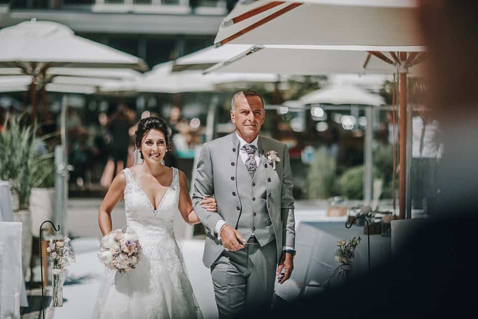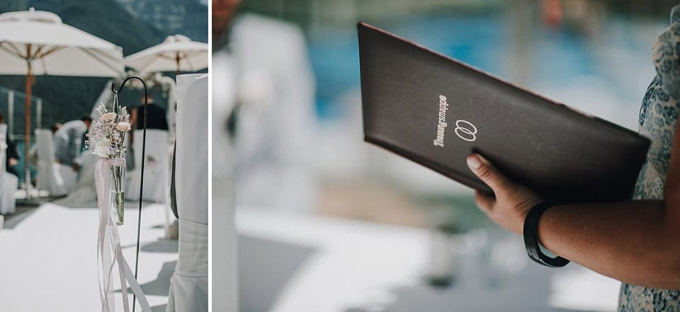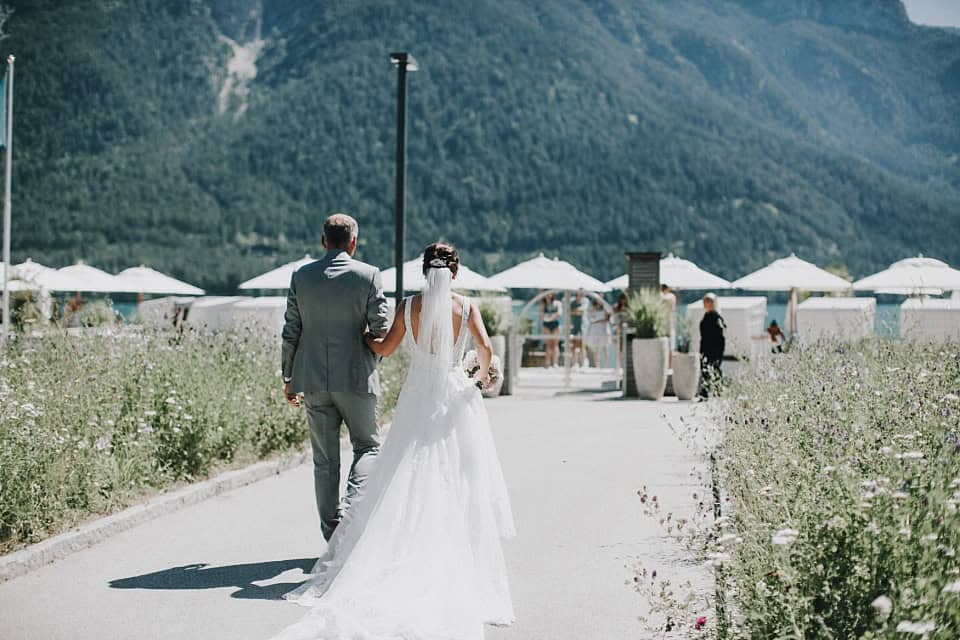 Das Getting Ready von Laura und Benjamin fand direkt am See im Strandhotel Entners statt. Gemeinsam mit ihren engsten Freunden und der Familie bereiteten sie sich dort auf ihren großen Tag vor. Der „First Look“ mit Lauras Vater fand kurz vor der standesamtlichen Trauung direkt im Hotel statt und war sehr emotional. Gemeinsam mit ihrem Vater machte sich Laura auf dem Weg zu ihrem Benjamin, der beim Anblick seiner Laura eine Träne nicht verkneifen konnte. Nach der standesamtlichen Trauung auf der Seeterrasse des Strandhotel Entrees ging es zur kirchlichen Trauung nach Eben am Achensee. Kurz zuvor nutzten wir das nahegelegene Bootshaus noch für die ersten Paarfotos.