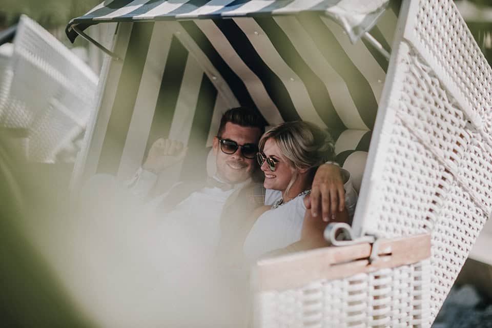 Bei traumhaftem Sonnenuntergang konnten wir noch ein paar letzte Paarfotos machen. Die beiden genossen die Zeit zu zweit sichtlich. Danach wurde noch ausgelassen bis in die frühen Morgenstunden im Strandhotel Entners die Liebe der beiden gefeiert.