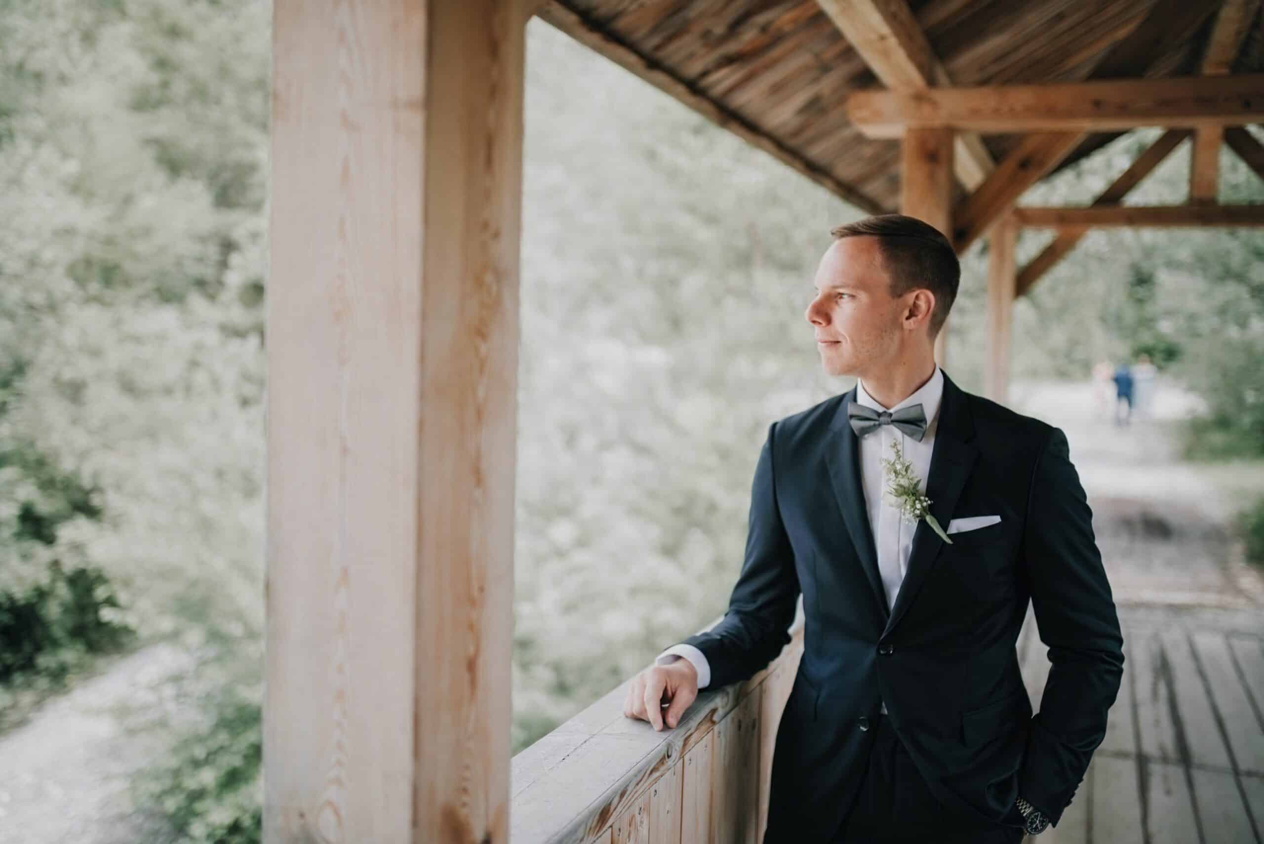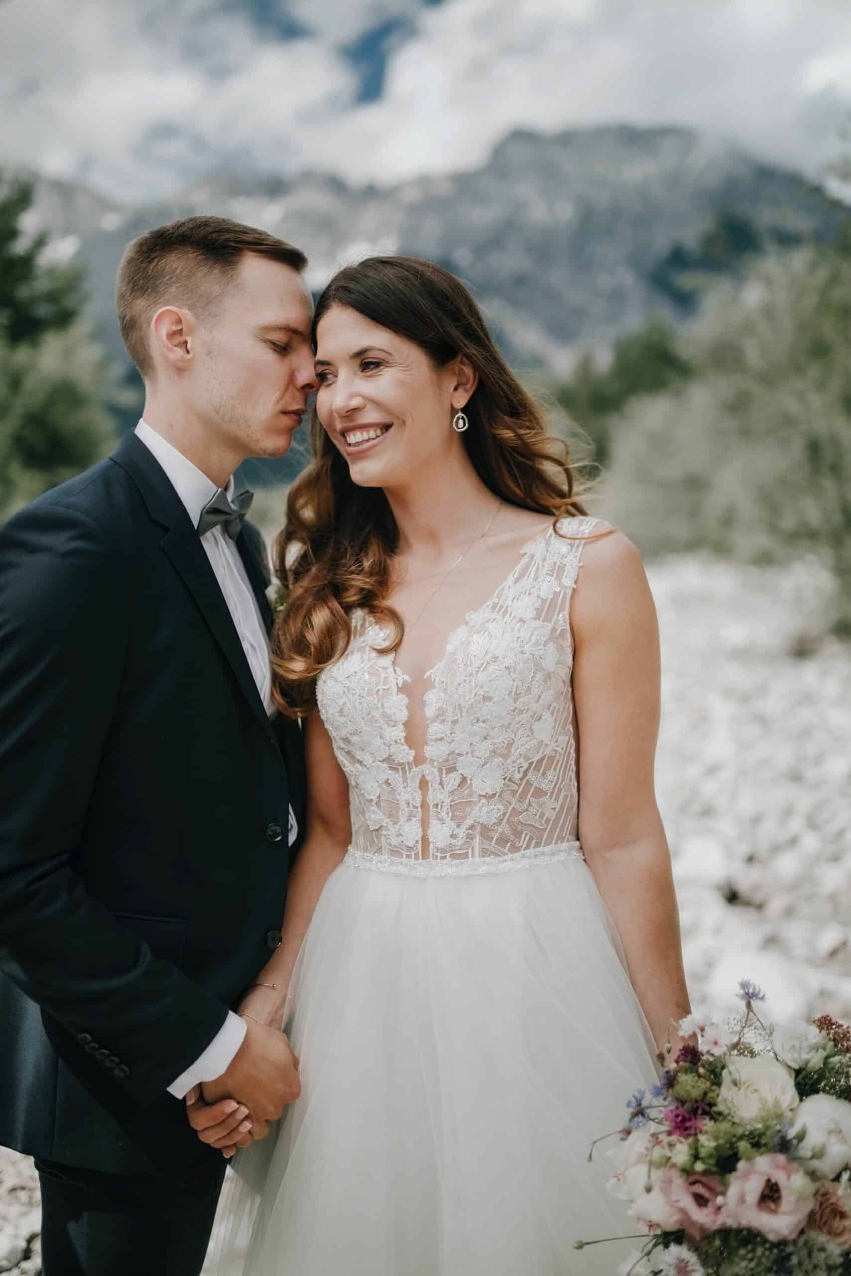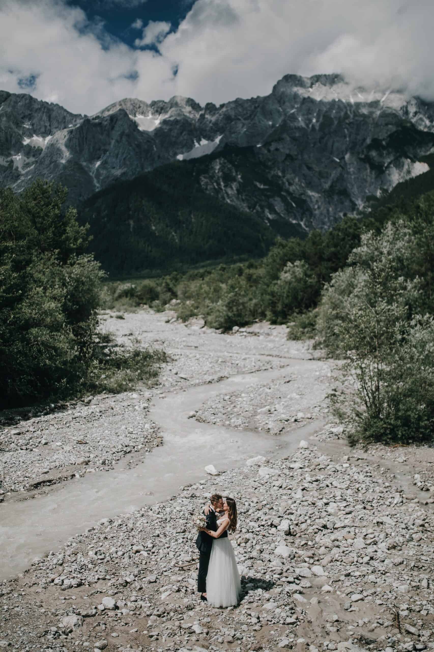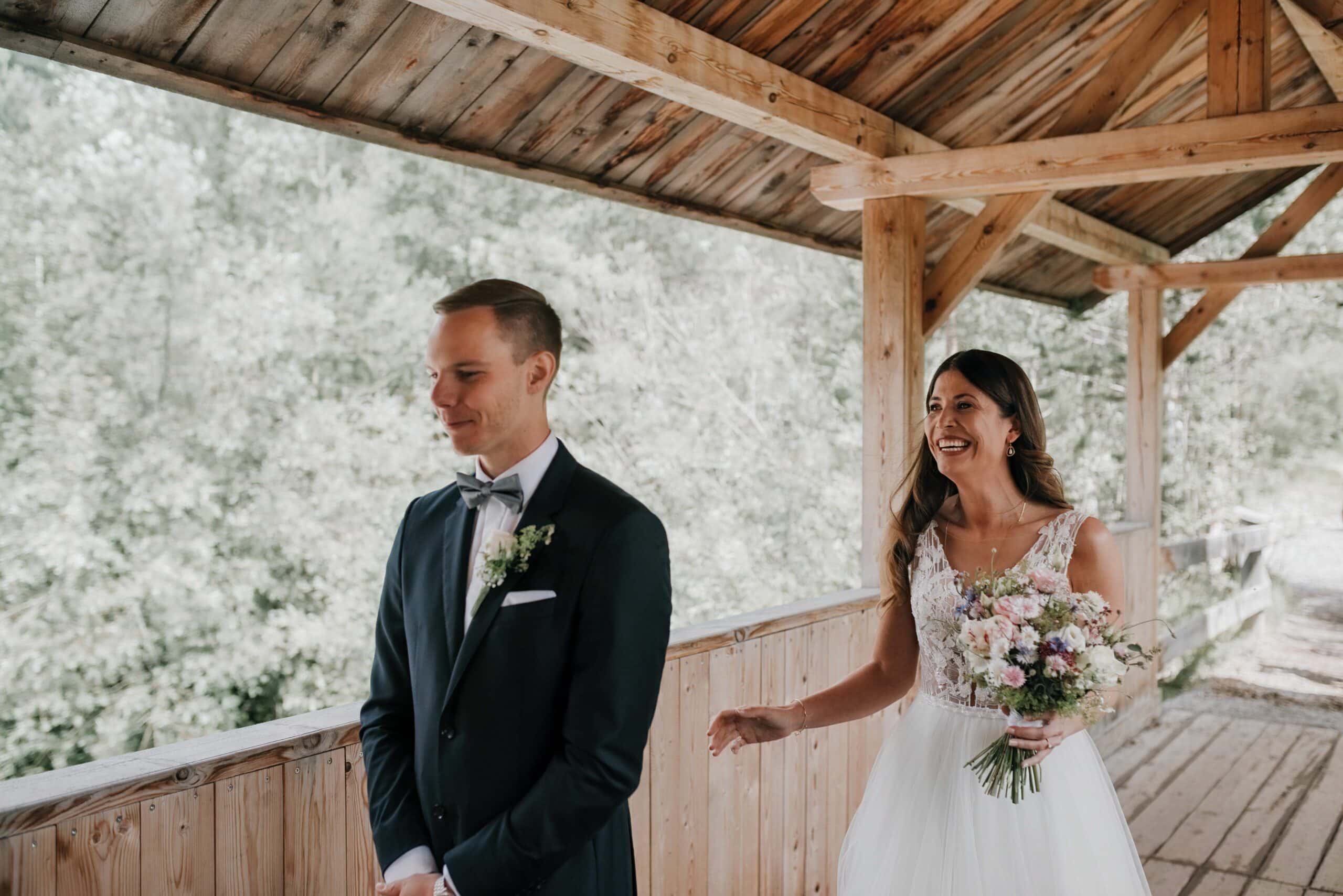 Wir durften die beiden bereits beim Getting Ready begleiten. Gemeinsam mit ihren engsten Freunden und der Familie bereiteten sie sich dort auf ihren großen Tag vor. Die beiden legten besonders viel Wert auf Details, die liebevoll vorbereitet wurden. Bevor es zum “First Look” ging öffneten die beiden noch ihre Liebesbriefe, die sie zuvor einander geschrieben hatten. In der Nähe der Stöttlalm sahen sich Mirja und Justin dann schließlich zum ersten Mal. Wir nutzten das ausgetrocknete Flussbett gleich für ein paar Bilder vor der Hochzeit.