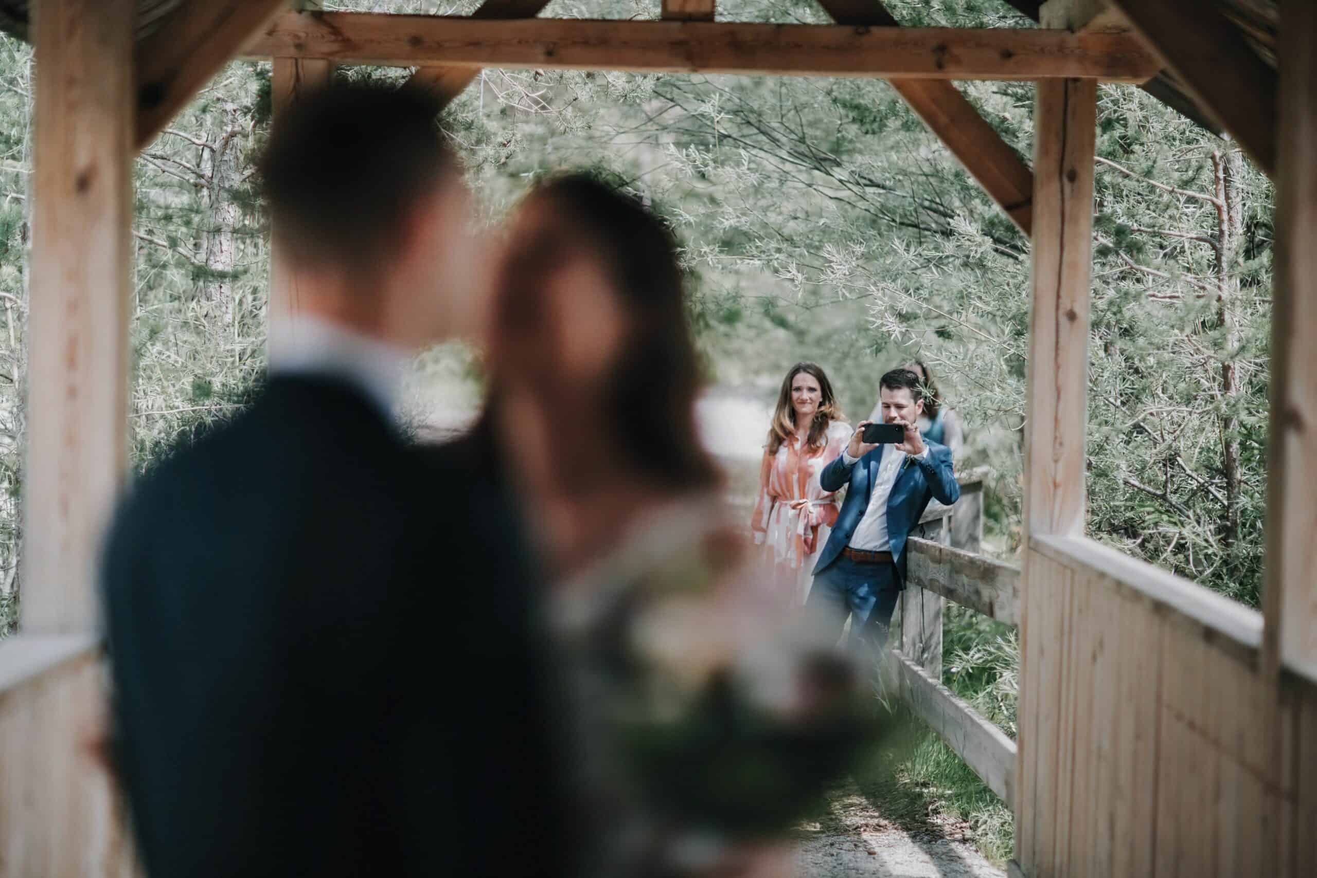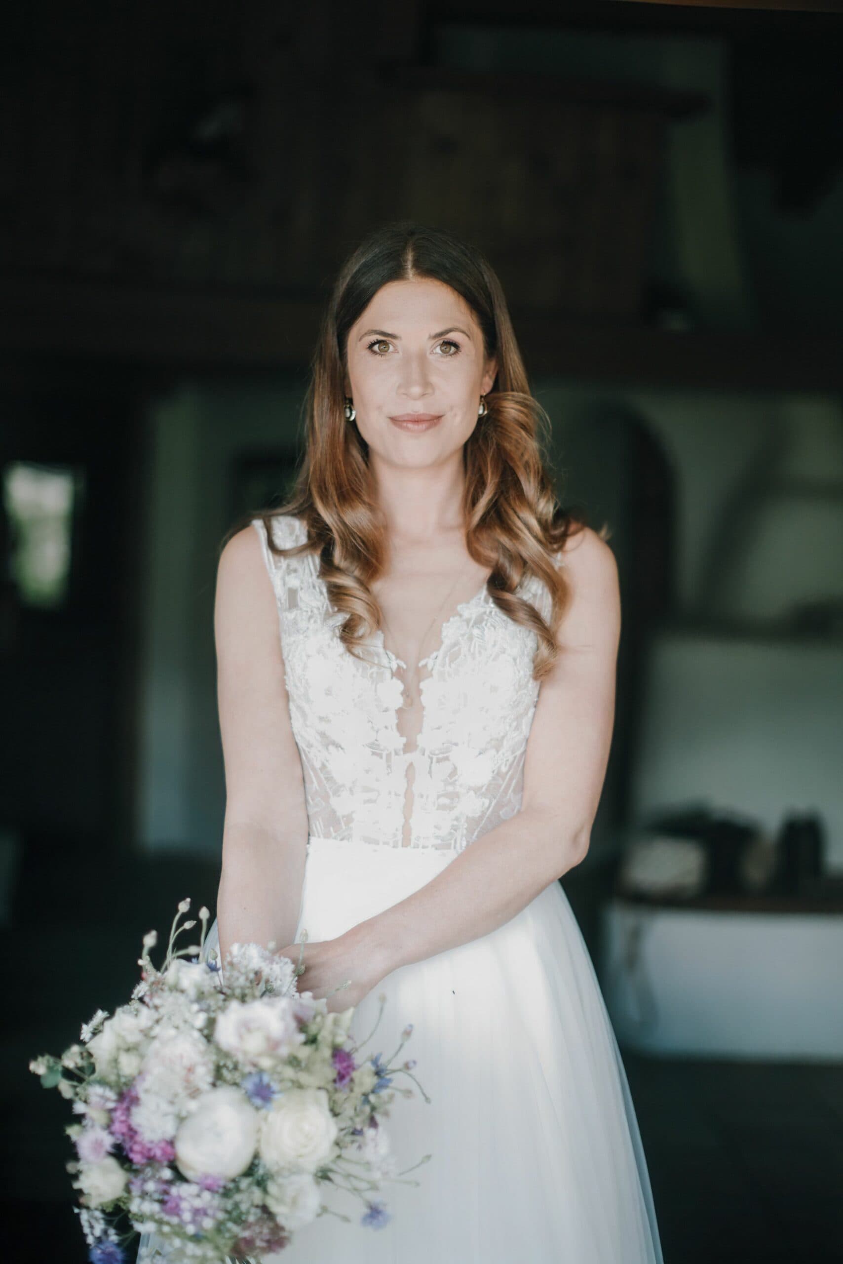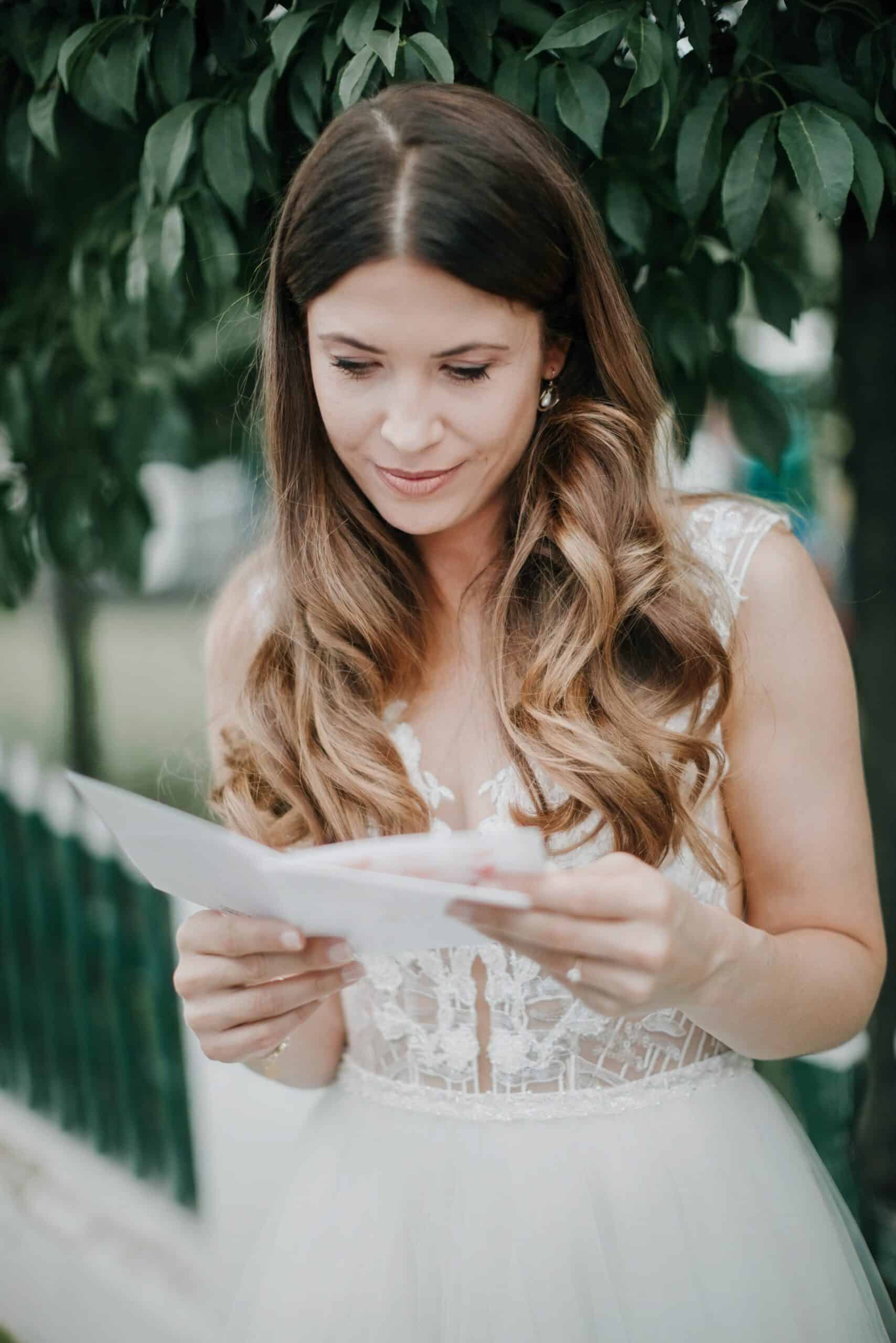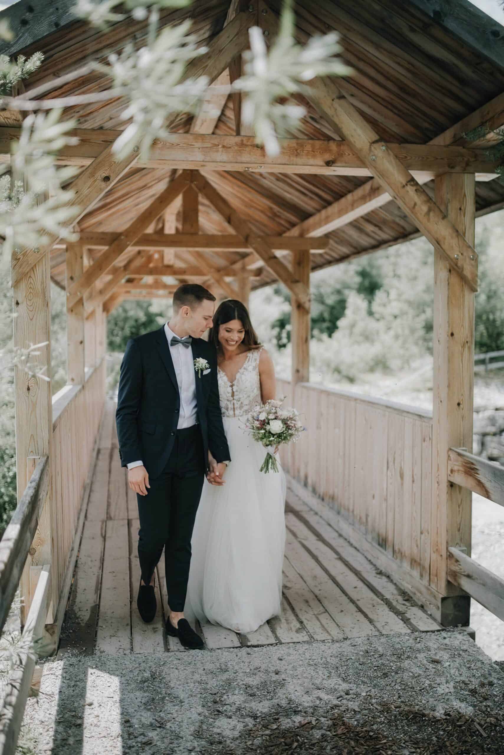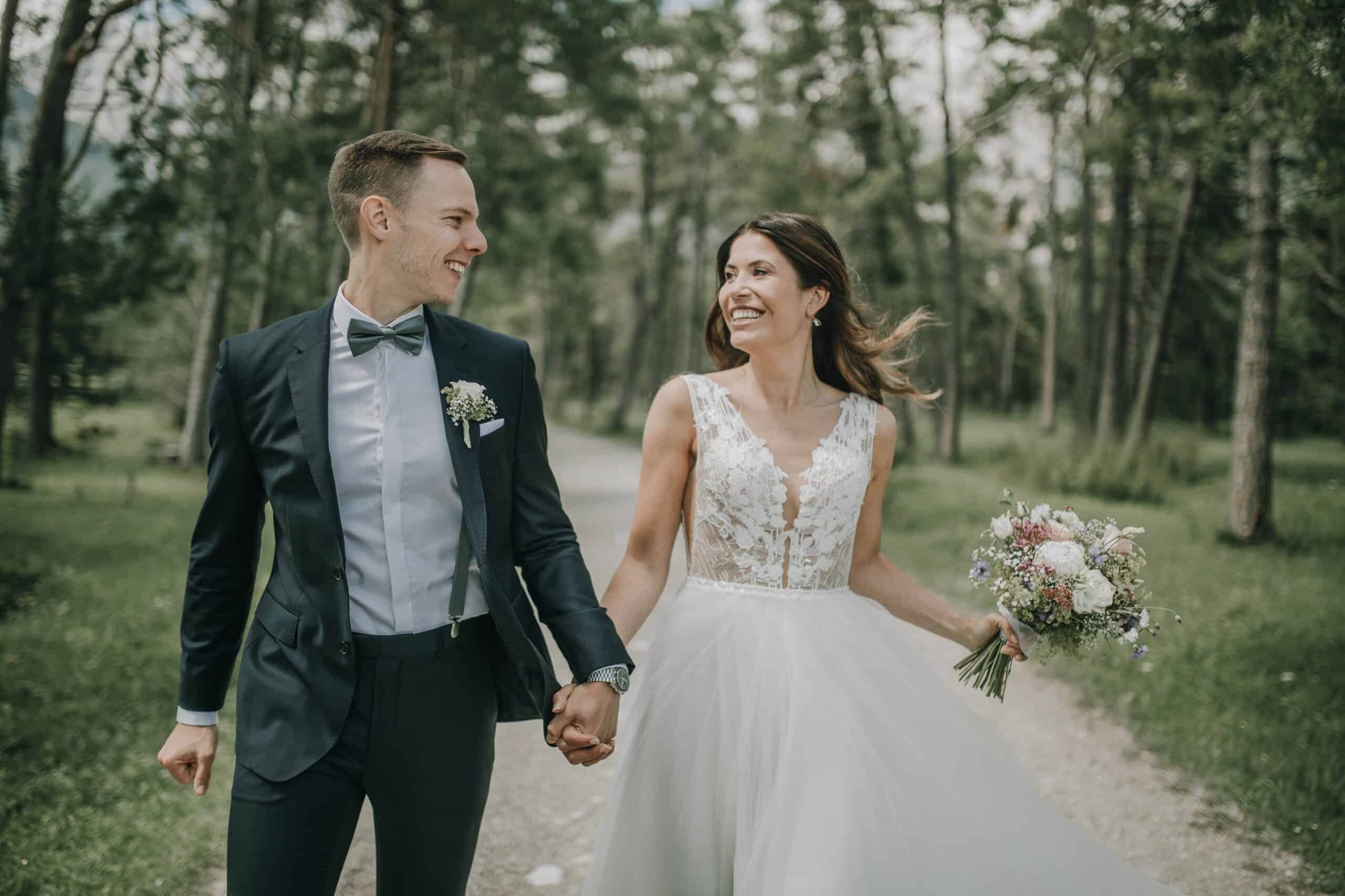 Wir durften die beiden bereits beim Getting Ready begleiten. Gemeinsam mit ihren engsten Freunden und der Familie bereiteten sie sich dort auf ihren großen Tag vor. Die beiden legten besonders viel Wert auf Details, die liebevoll vorbereitet wurden. Bevor es zum “First Look” ging öffneten die beiden noch ihre Liebesbriefe, die sie zuvor einander geschrieben hatten. In der Nähe der Stöttlalm sahen sich Mirja und Justin dann schließlich zum ersten Mal. Wir nutzten das ausgetrocknete Flussbett gleich für ein paar Bilder vor der Hochzeit.