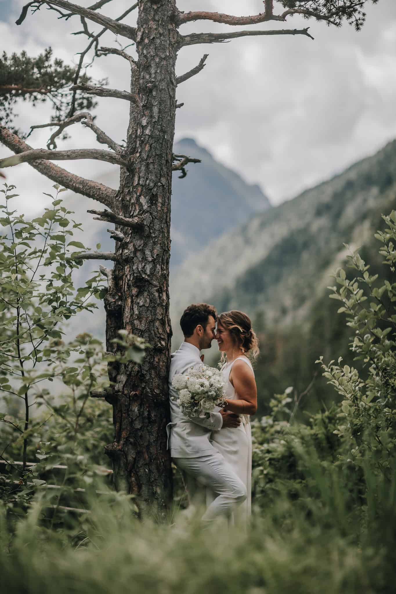 Hochzeitspaar Baum Tiroler Berge